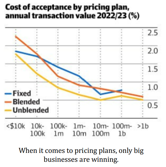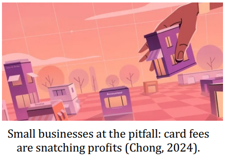 (Worthington, 2024). Small businesses, however, can’t negotiate such favourable terms and are forced to pass these costs onto consumers,