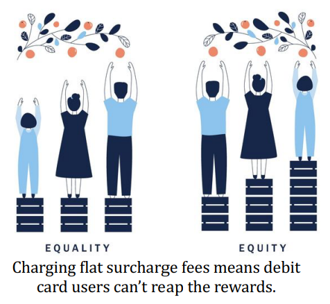 The other issue is flat surcharging rates. While they might offer equality for all customers, they don’t facilitate equity. Card networks